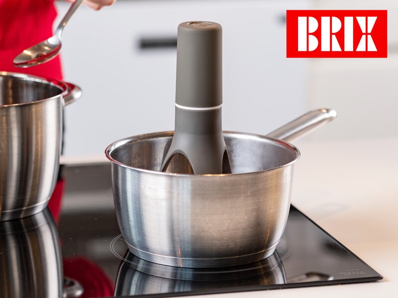 Sæt din nye køkkenven ned i panden, så den kan stå der og røre rundt med tre forskellige regulerbare hastigheder. Intet bliver brændt, ingen bliver stresset, og du kan stå i ro og mag og snitte salat.
