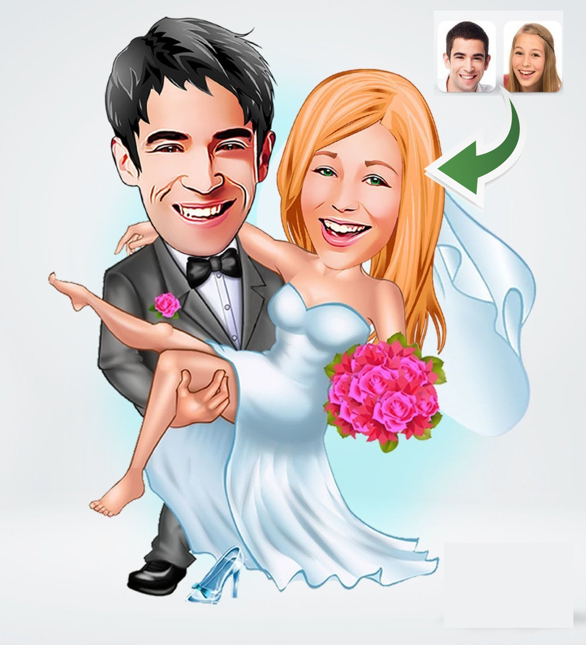 Bryllupspar tema1 (2 personer) – karikaturtegning efter dine fotos