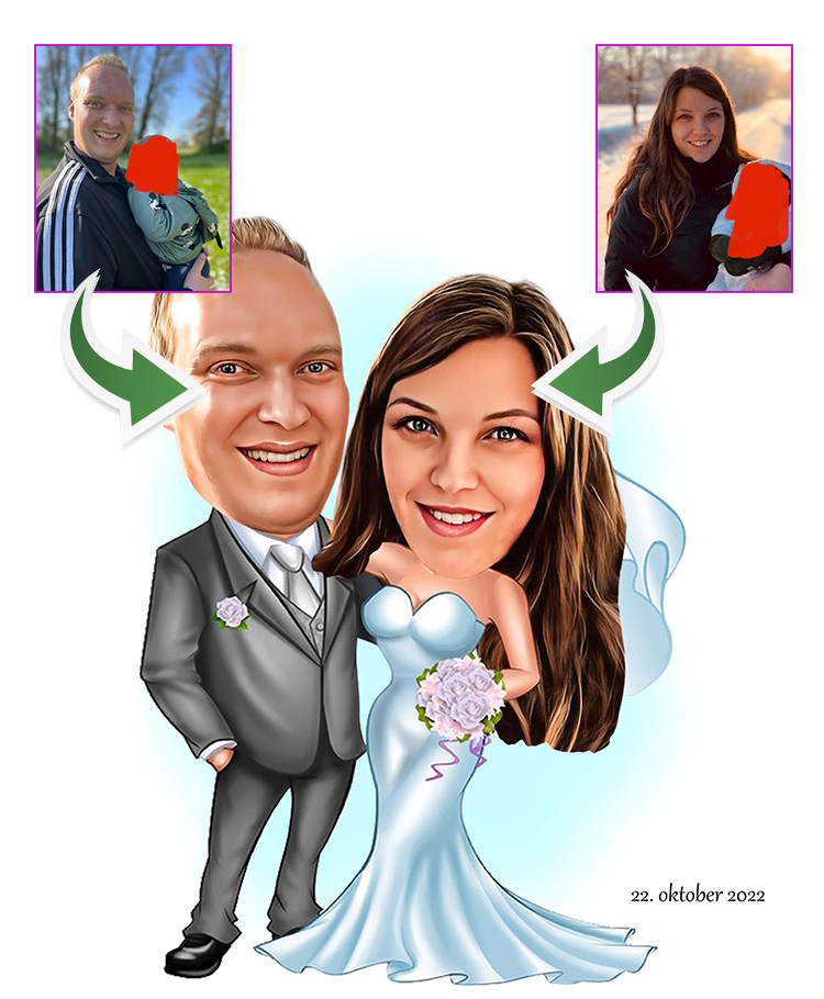 Bryllupspar tema6 (2 personer) – karikaturtegning efter dine fotos