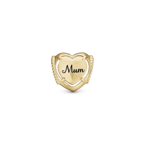 Mors Dag’s charm i forgyldt fra Christina Collect. Husk din mor på mors dag og forær hende det fine MUM charm i gave eller bær den forgyldte MUM charm på dit armbånd for at minde dig om din fantastiske mor. Kombiner evt. med charms i almindelig sterlingsølv for et helt specielt udtryk. Materiale: Forgyldt 925 sterlingsølv Dette fine MUM charm findes ogsåi en sterlingsølv udgave. OBS! Dette charm passer kun til Christina Collect læderarmbånd.