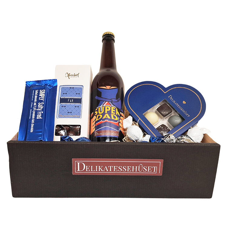 Fortjener din far en hilsen i anledningen af Fars Dag d. 5. juni? Denne fine gavekasse indeholder lidt godt og blandet, som de fleste fædre vil elske at gå ombord i. Du kan tilmed skrive en personlig hilsen og få vedlagt i gaven, så gaven bliver ekstra pe