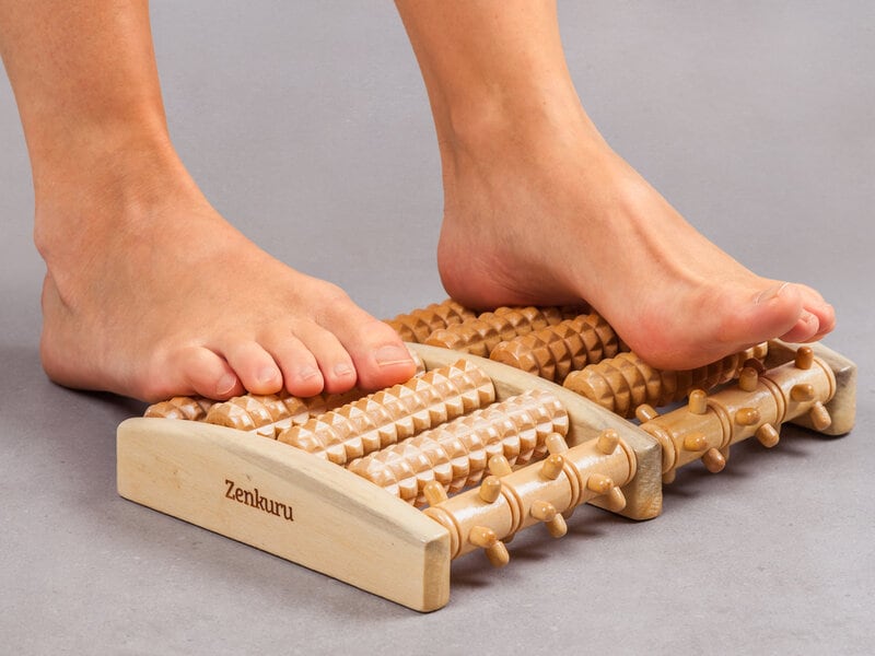 Byd fødderne på en afslappende massage! Med Zenkuru fodmassagerulle i træ ruller du spændinger og ømheder i fødderne væk! Anbring fodsålerne på rullerne – rullernes træknopper masserer dine fødder og efterlader dem dejligt afslappede
