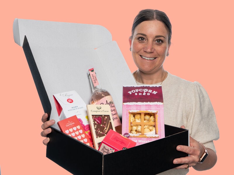 Overrask en du holder lidt ekstra af med en æske fuld af lækkerier! Vores store gaveæske med kærlighedstema er fyldt med lækkerier – perfekt som en romantisk gave til en du elsker!