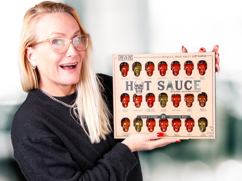 Inferno Tasting Flight fra Thoughtfully er gaveæsken til den, der ikke er bange for lidt ekstra varme! Med sit unikke udseende og sine brændende smagsvarianter byder den på både overraskelse og smagsglæde. En perfekt gave til nogen, der elsker stærke saucer og oplevelser ud over det sædvanlige.