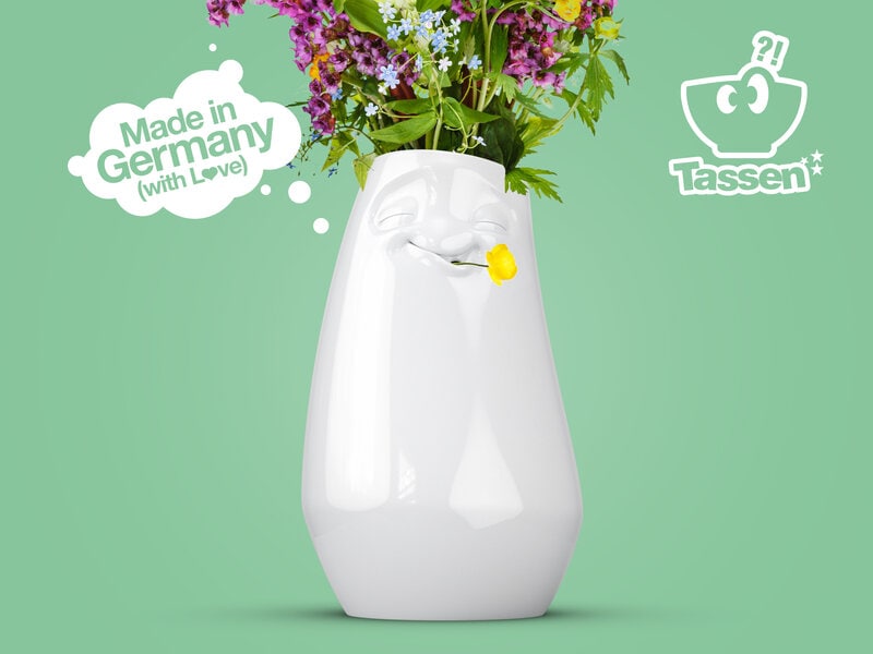 Med et afslappet ansigtsudtryk tager Humørvasen hånd om dine blomster, når du pynter spisebordet! Desuden kan den være en rigtig charmør med en rose i munden – den udtryksfulde vase fra Tassen tager dit hjem med storm!