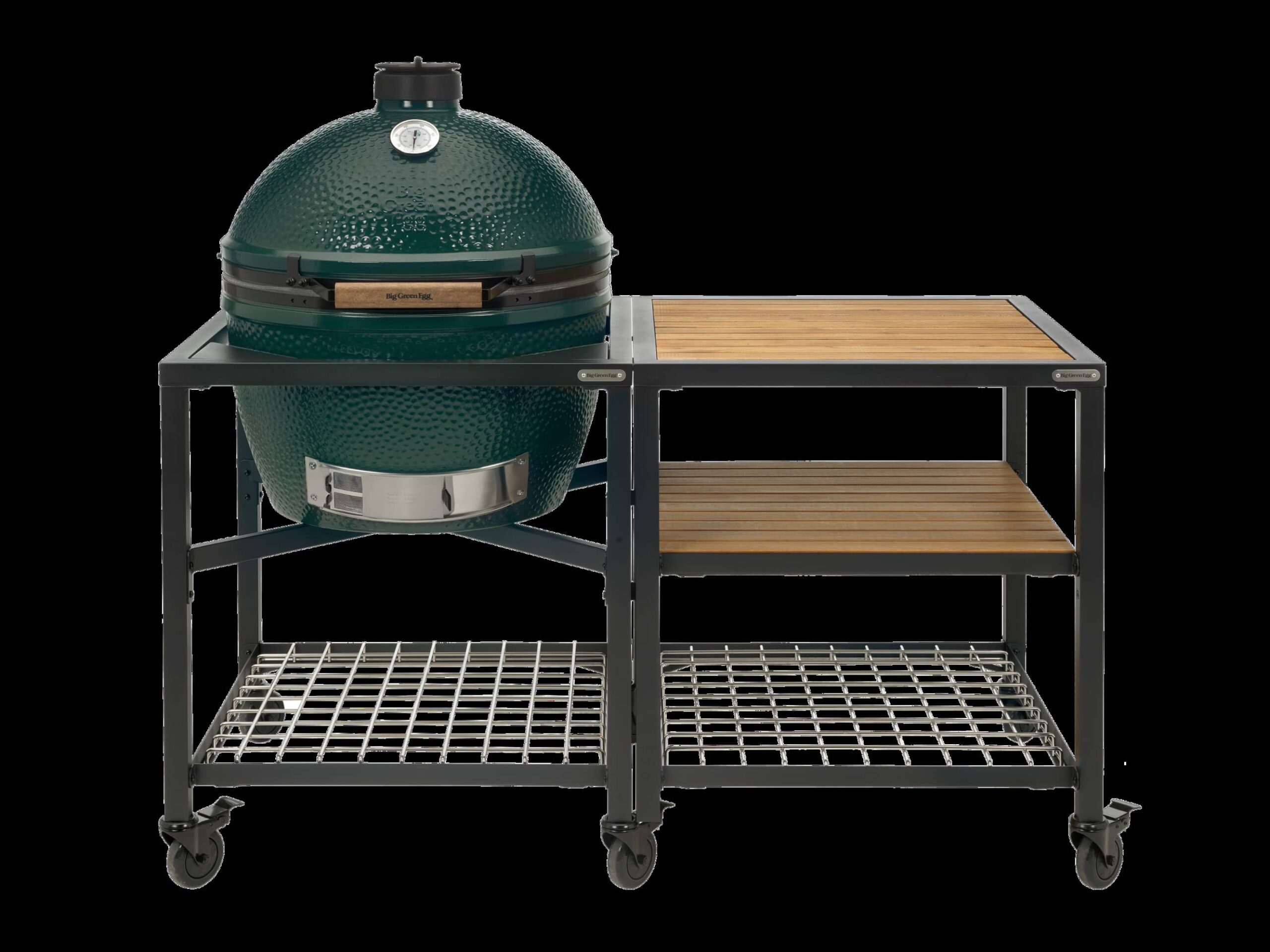 Med frame pakke+ i strørrelse XL fra Big Green Egg får du en skøn grilloplevelse. Du får en stor grill af højeste kvalitet med en praktisk og elegant arbejdsflade, der med garanti vil imponere gæsterne. Takket være den medfølgende EGG Frame stålramme sidder din grill solidt på plads i ergonomisk højde, så du kan grille lige så ofte du vil. Den har også praktiske kroge på siden, hvor du kan hænge redskaber og viskestykker. Grillens overflade har en diameter på 61 cm, så du nemt kan lave mad til 10 personer og opefter.