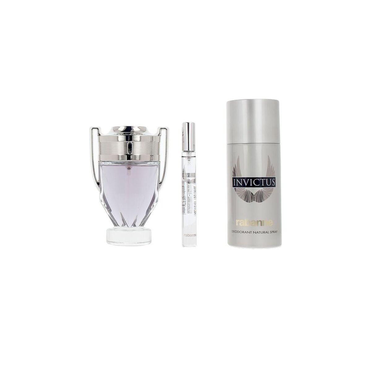 Kunne du tænke dig at give et sæt parfume eller kosmetik som gave? Parfume sæt til mænd Paco Rabanne INVICTUS 3 Dele er 100% original og i en eksklusiv æske, der er ideel som en lille gave til familie eller venner. Gå ikke glip af disse 100% originale produkter Paco Rabanne!