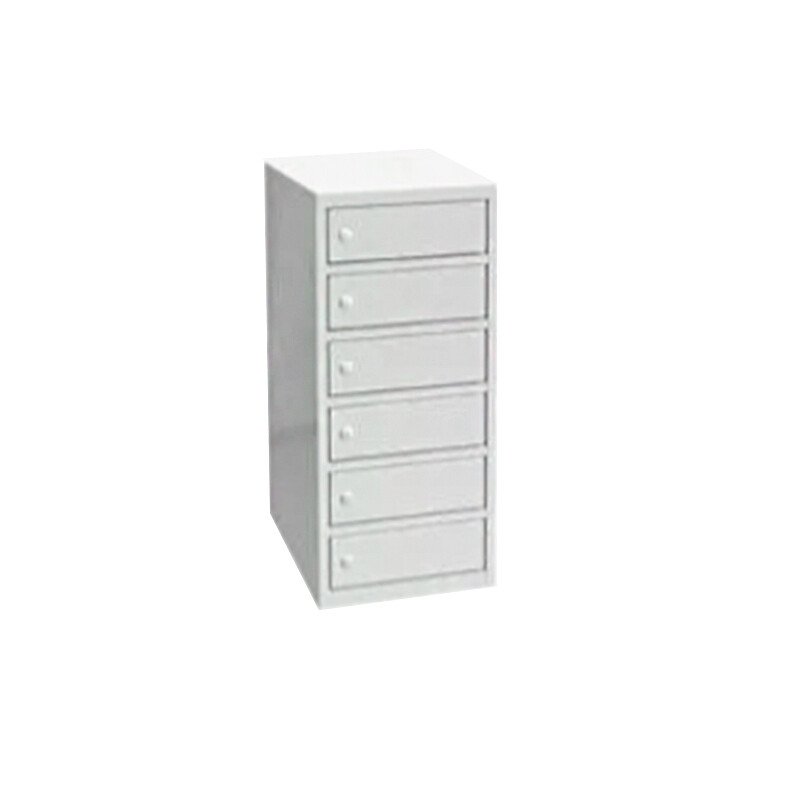 PC skab med el til opladning af laptop – bærbar computer. 6 rum i højden med lige tag. Pulverlakeret kabinet og døre. Lysgrå kabinet, RAL 7035, og lysgrå døre, RAL 7035. Levereres med færdigmonteret cylinderlås i dørene. Dim (hxbxd): 901 x 400 x 550