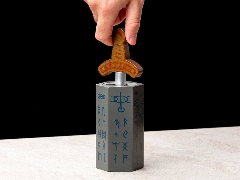 Dette er en udfordring, der venter på at blive løst! Prøv at løfte det mægtige sværd fra stenen og vis, at du er den retmæssige hersker.